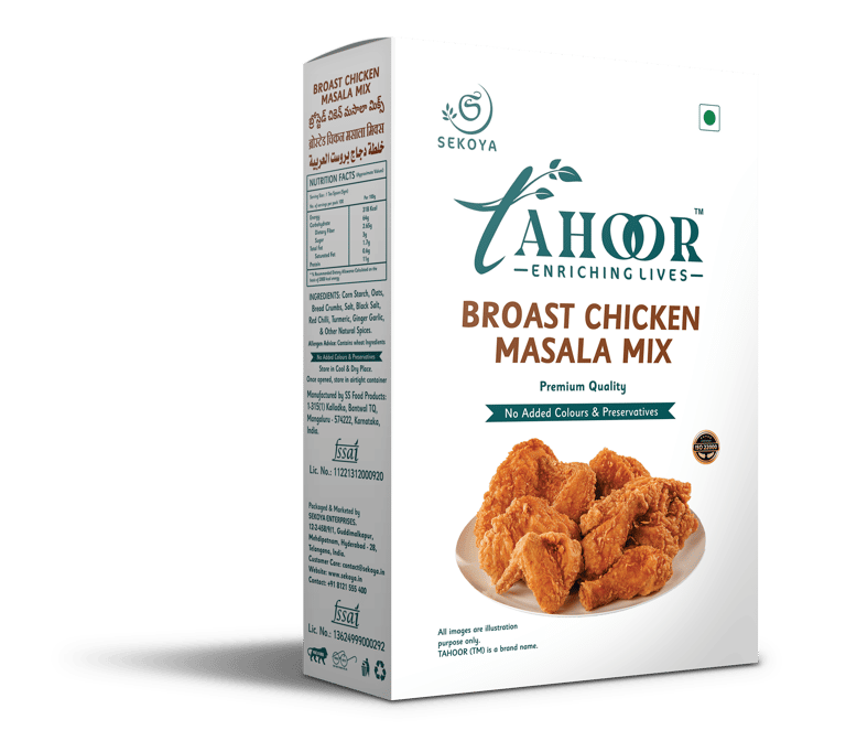 Broast Chicken Masala is a specially crafted spice blend designed to enhance the flavor of broasted chicken with a rich, savory profile. It offers benefits like improved digestion and antioxidant properties from its carefully selected spices. At SEKOYA Enterprises, we use high-quality spices such as cumin, coriander, garlic, and paprika, expertly blended and ground to perfection. Each batch is rigorously tested to ensure consistent flavor and quality, providing you with a delicious and aromatic masala that makes your broasted chicken a standout dish.