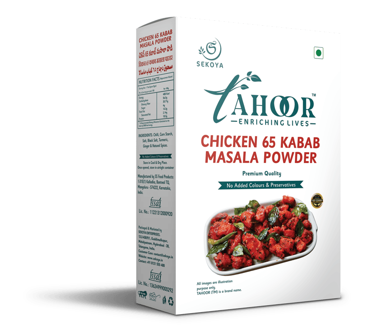 Chicken 65 Masala is a bold and flavorful spice blend that brings a distinctive, spicy kick to Chicken 65, a popular Indian dish. It not only adds robust flavor but also provides antioxidants and may aid digestion. At SEKOYA Enterprises, we use premium spices, including red chili, coriander, cumin, and a touch of turmeric, carefully blending and grinding them to create our Chicken 65 Masala. Each batch undergoes thorough quality control to ensure a consistent and vibrant flavor, helping you achieve the perfect balance of spice and taste in every dish.