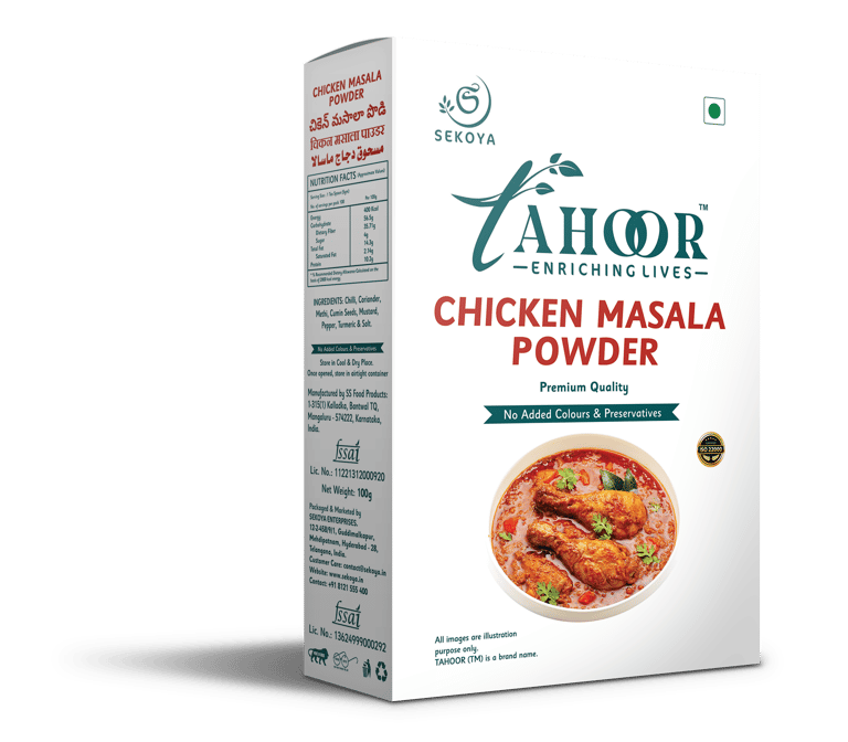 Chicken Masala Powder is a vibrant spice blend designed to enhance the flavor of chicken dishes with its rich, aromatic profile. It offers benefits such as aiding digestion and providing antioxidants from its blend of spices. At SEKOYA Enterprises, we start with carefully selected spices like coriander, cumin, turmeric, and paprika. These spices are meticulously blended and ground to create a balanced, flavorful powder. Each batch is rigorously tested to ensure consistent quality and freshness, ensuring that our Chicken Masala Powder delivers a delicious, authentic taste to every meal.